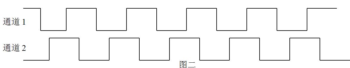當(dāng)旋轉(zhuǎn)方向與圖四 所示方向相反時,通道2波形將超前通道1波形90度,波形示意圖如下所示:
